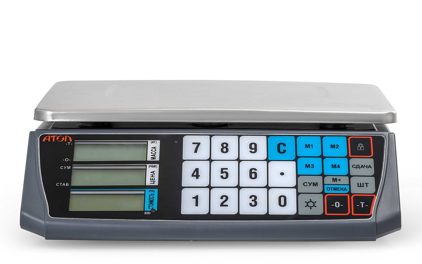 - Весы АТОЛ MARTA имеют все необходимые режимы и функции: взвешивание, расчет стоимости и сдачи, 4 клавиши быстрого вызова цены.