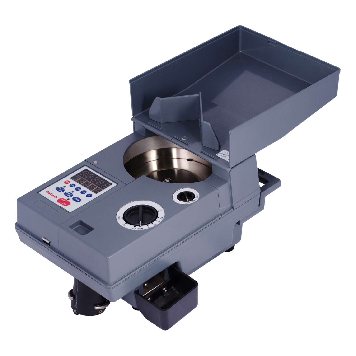 Счетчик монет DoCash 903 может настраиваться индивидуально для удобства работы кассира. Фасовка и счет отражаются на отдельных ярких экранах. Как только достигается заданный размер фасовки счетчик автоматически останавливается. При подсчете происходит одновременная обработка монет и жетонов одинакого номинала. Брак – монеты, которые не соответствуют заданным по диаметру и толщине параметрам, – сбрасываются в отдельный мешок. Диаметр и толщина единиц для подсчета также устанавливаются отдельно – от 14 до 34 мм диаметром и от 0,8 до 3,8 мм толщиной.