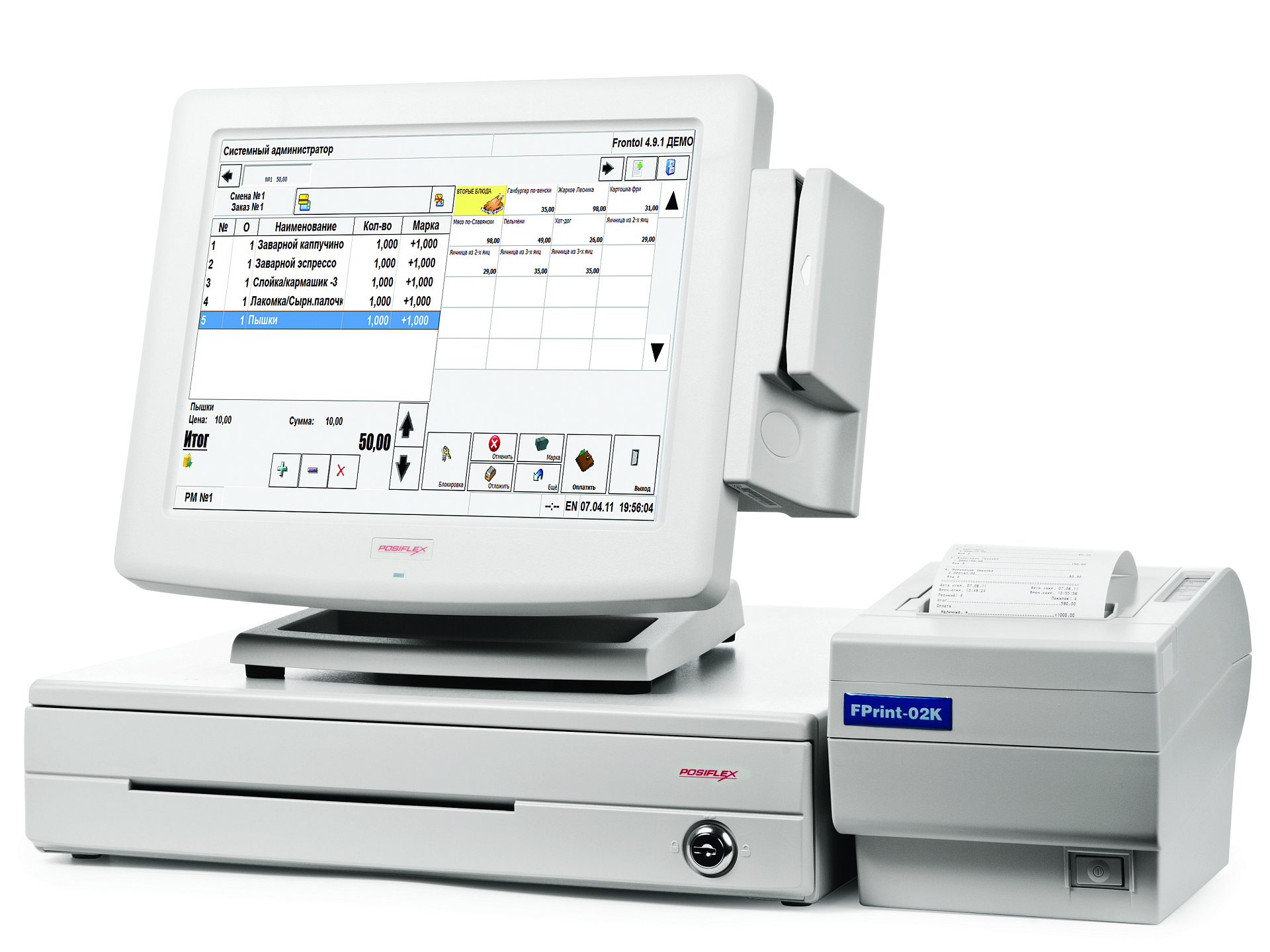 Функциональность системы обеспечивает программное обеспечение Frontol.Кафе. POS-система работает на операционной системе Windows POSReady.