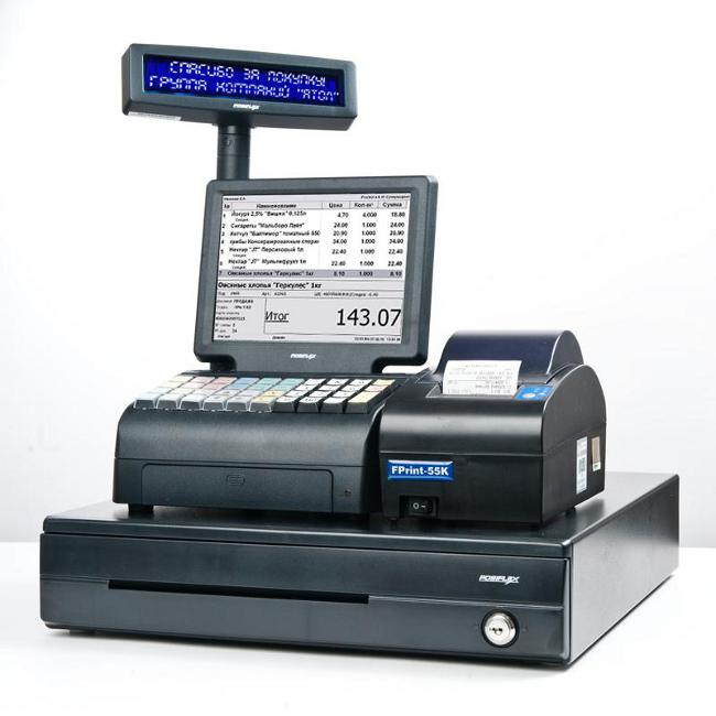 В системе используется фискальный регистратор FPrint-55К, разработанный для качественного обслуживания большого потока покупателей. Этот фискальный регистратор подходит для любых сфер применения и любых размеров предприятий.