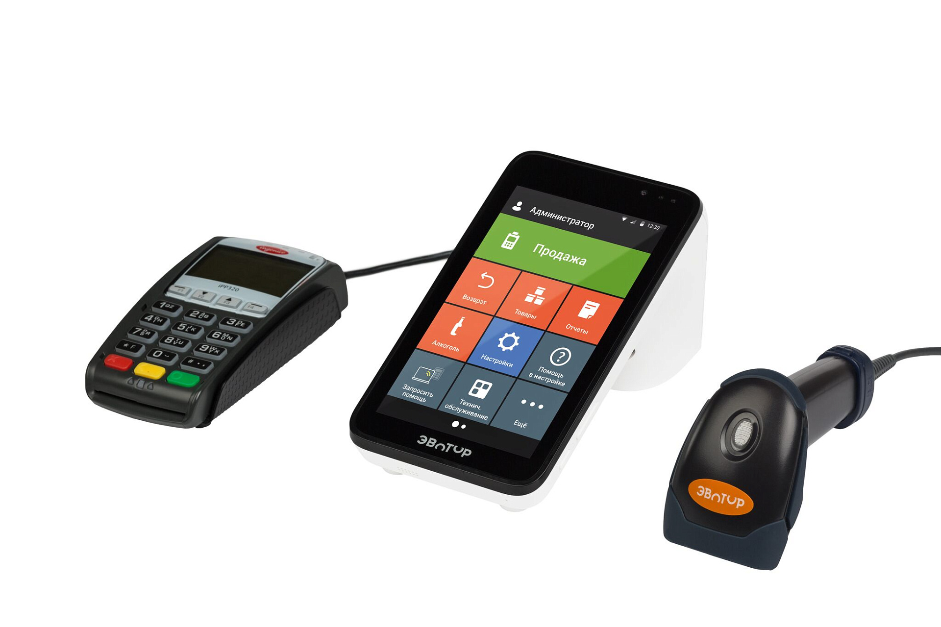 Эвотор 7.3 полностью соответствует новому законодаельству 54-ФЗ и подходит для торговли пивом и крепким алкоголем. Если у вас уже есть УТМ, покупать его снова не придется.Преимущество Эвотор 7.3 - возможность автономной работы от аккумуляторов до 14 часов, а значит работать можно в любом месте и независимо от наличия электричества в вашей торговой точке. Смарт-терминал поддерживает работу с Wi-Fi, Ethernet, 3G.