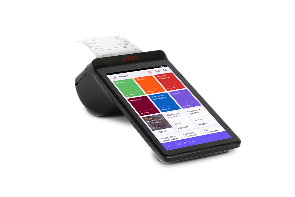 Простой и понятный интерфейс на базе Android поможет кассирам легко усвоить работу с терминалом и быстро обслуживать посетителей. Печать чеков происходит со скоростью 70 мм/с. Вносите большое количество номенклатуры – флеш-память устройства рассчитана на 8 Гб.