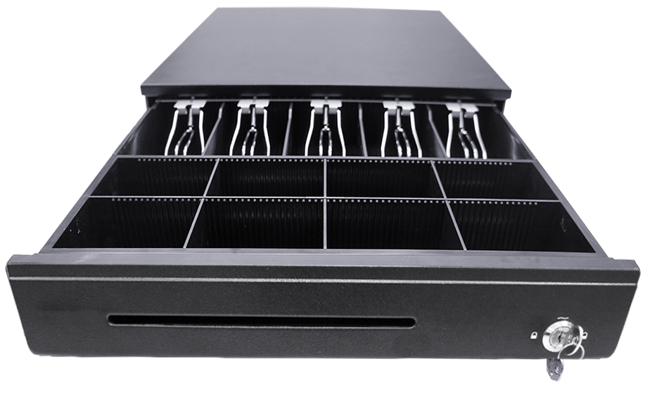 Денежный ящик обладает высококачественными шариковыми направляющими, сделанными из металла, а также запирающим механизмом и соленоидом повышенной надёжности.