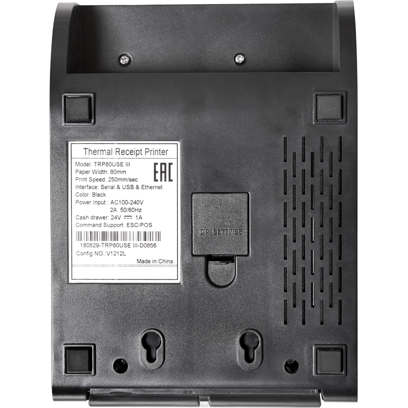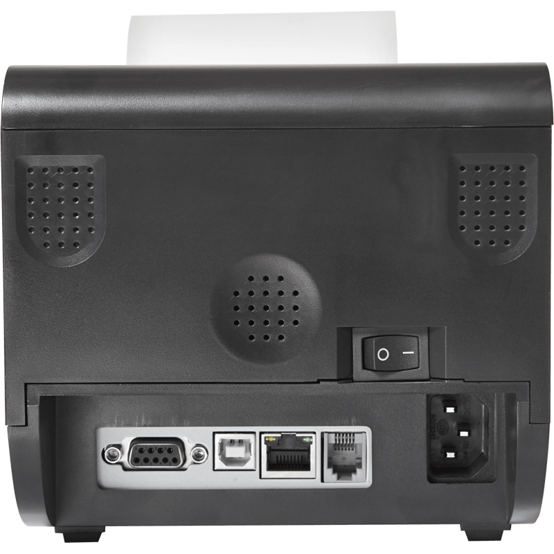 В штатной комплектации PayTor TRP80USE III есть автоотрезчик, встроенный звонок для оповещения о печати чека и световой индикатор, который сообщает о состоянии чековой ленты. Блок питания встроен в корпус для удобства установки и подключения.