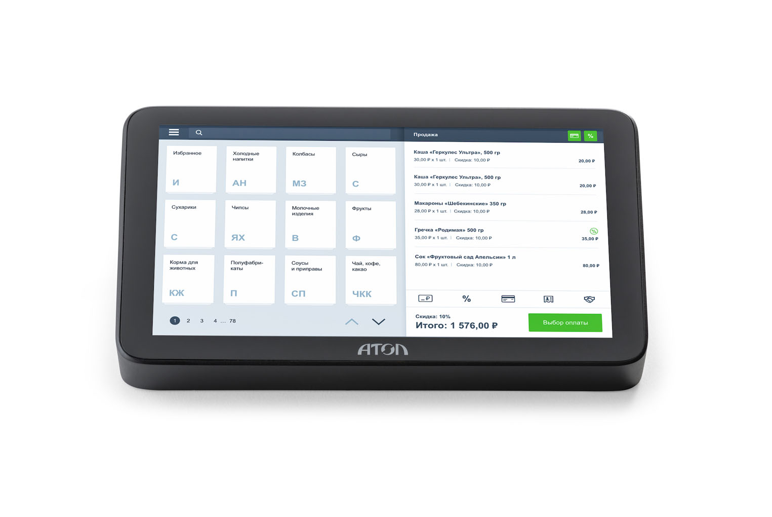 Главное преимущество терминала - качественный сенсорный экран, который мгновенно реагирует на нажатия и отображает все максимально четко. Диагональ 9 дюймов позволяет комфортно работать с любыми программами и приложениями. Эргономичная конструкция терминала создана с повышенной устойчивостью - кассир или официант может без опаски нажимать на экран, АТОЛ Strike не опрокинется.